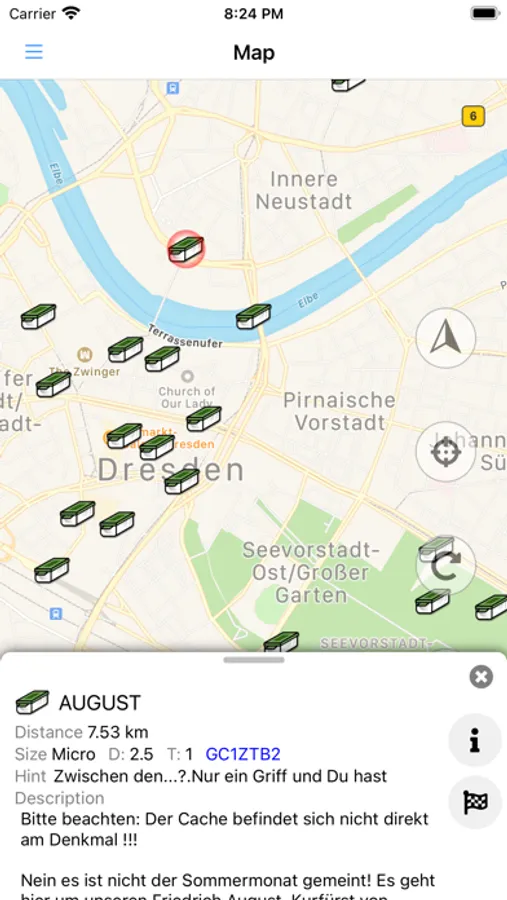- It navigates you to the geocache by direct line on the map or by compass