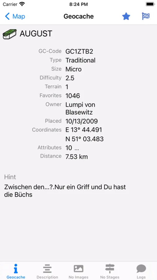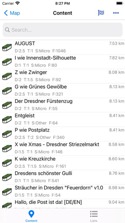 - Create your own lists directly in the app to bundle the geocaches of your tour in one area