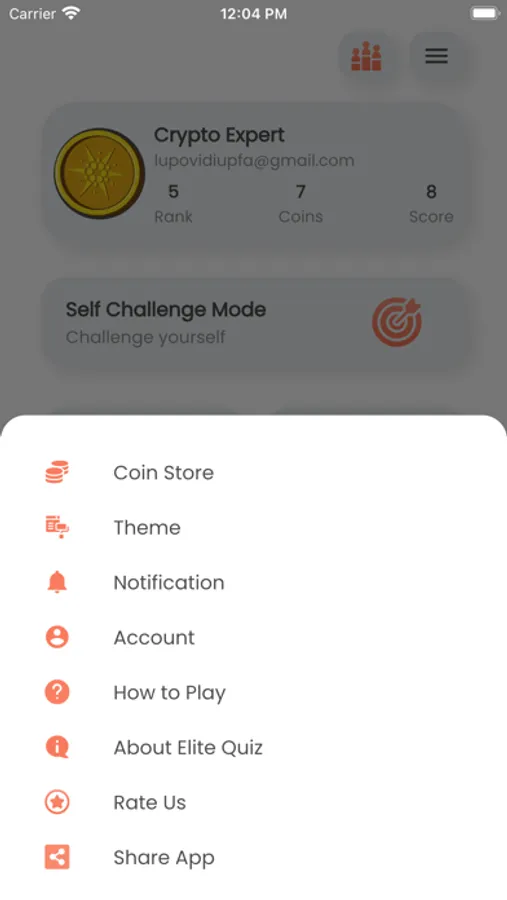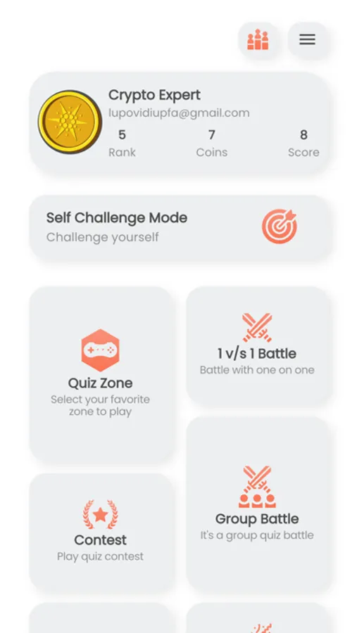 **Self challange (Self-challenge allows the player to challenge himself by getting their time, categories numbers of questions they want to add),