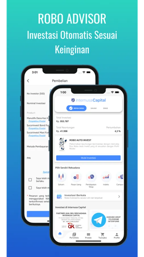 Aplikasi Interfund dari Internusa Capital di lengkapi dengan fitur Robo A.I menggunakan pendekatan para ahli (Investment Guru) yang dipakai dalam memudahkan pemilihan, penyesuaian dan tujuan keuangan investasi.