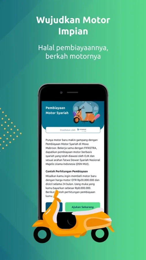 Dengan Moxa Mabroor, kamu dapat mengakses beragam produk keuangan berbasis syariah yang disediakan oleh berbagai mitra kami, mulai dari pembiayaan mobil, pinjaman tunai, pembiayaan haji, dan layanan keuangan lainnya.