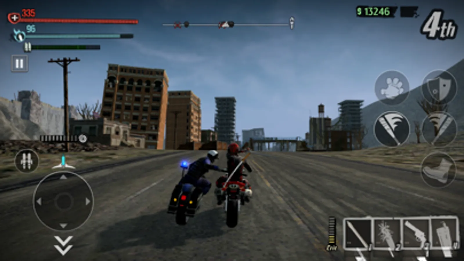 The roads can be lethal. Fortunately, every time you die, all the experience you've collected can be used to upgrade your character, your bike, and your weapon. Roguelite mechanics allow players to experiment with unique arsenals and customized loadouts for each run. Earn money to buy mid-run boosts by racing and completing assassinations, robberies, and other challenges in your path.