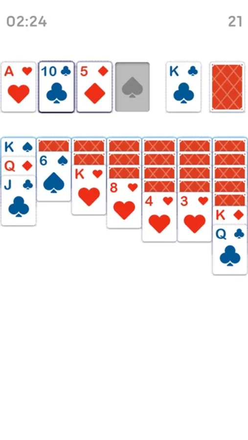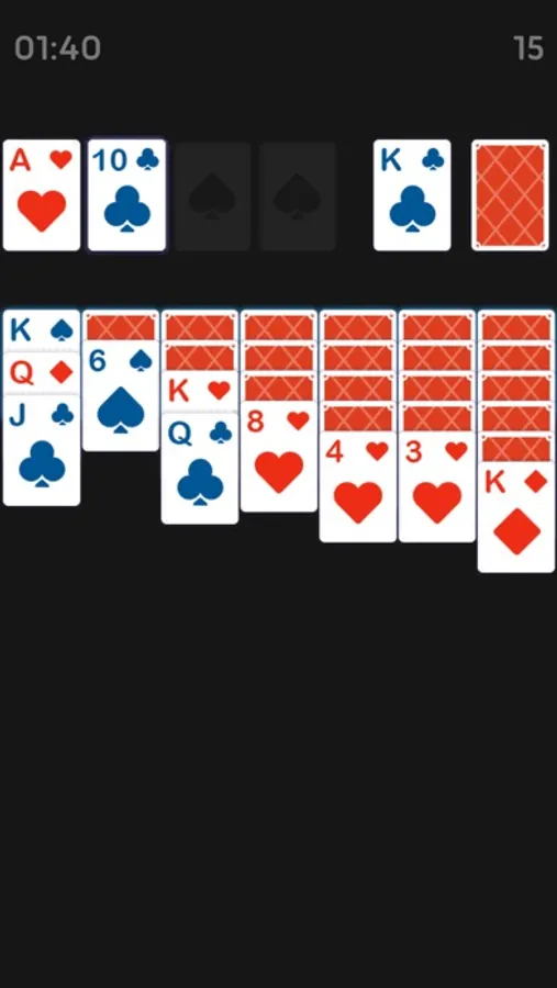 Tap or drag cards to arrange them in descending order with alternating colors. When you can, move cards up to the foundation to sort all of the suits from Ace to King. You can draw one card at a time for a more relaxing game, or draw three for a challenge to train your brain!