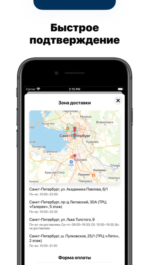 — Быстрый заказ с мгновенным подтверждением через приложение.