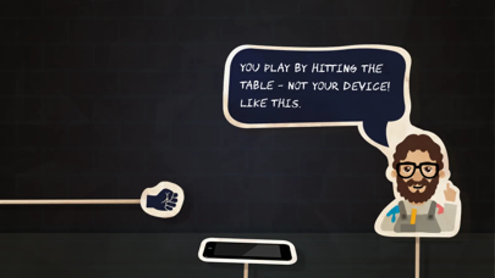 Place a smartphone or tablet on a table or a flat surface in between you. 'Smack the Table' works by detecting jolts/vibrations in the surface, so that every time you hit this surface, it is detected as a hit in the game. A moving shadow in the bottom of the screen indicates your aim, and the game values precision higher than power when you hit the nails.