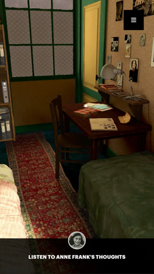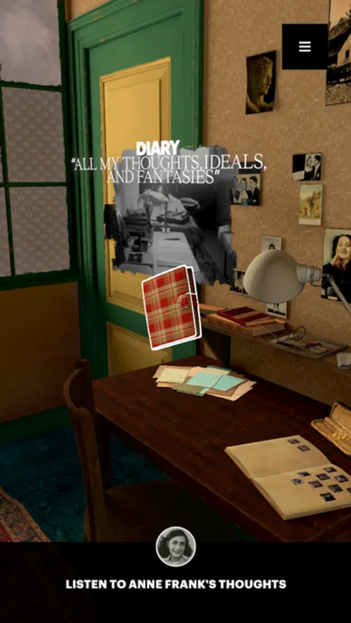 In this AR app, we invite you to step inside a carefully 3D-rendered model of the rooms of Anne Frank, Kuei, Mees, Dalit, and Majd, where you can walk around, explore their personal objects and the meaning behind them.