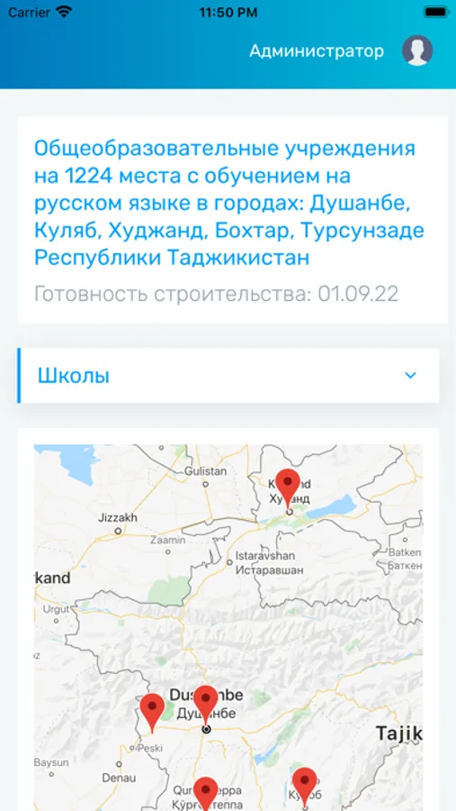 В приложении собрана самая полная и актуальная информация о ходе строительства школ в Таджикистане. Сервис простой и удобный, здесь вы можете: