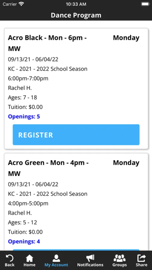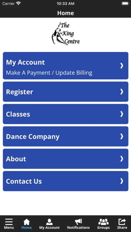 The King Centre for the Performing Arts app allows you to manage your account with ease, register for classes, parties, and special events. You'll also receive important notifications about class changes, closings, registration openings, special announcements, and upcoming events.