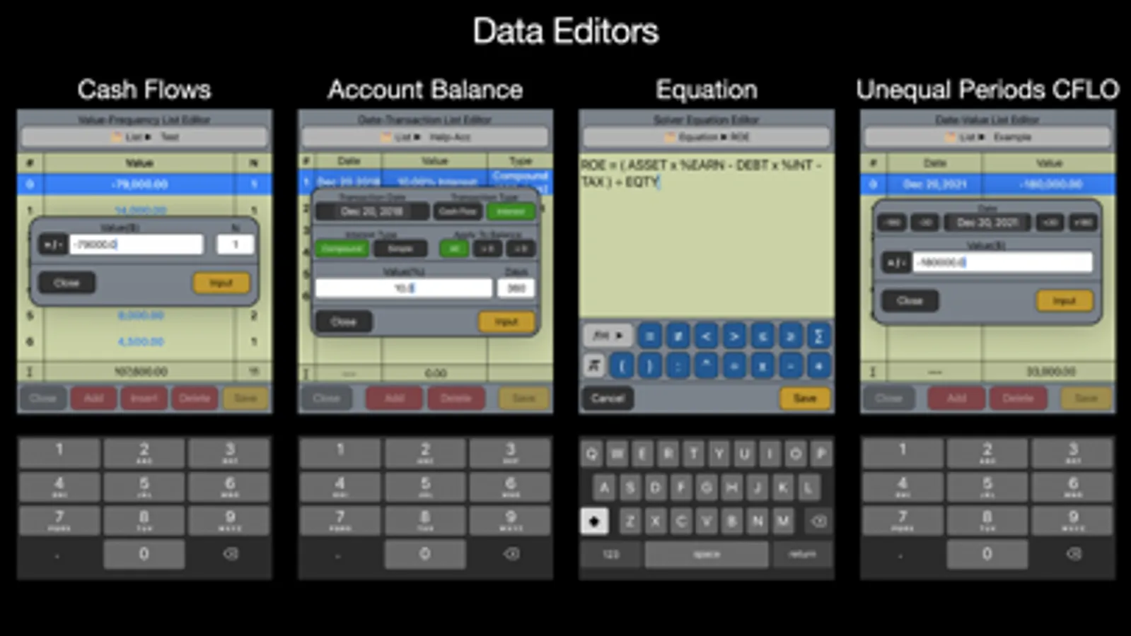 •Account Balance: Calculates the Balance of cash transactions and interest applied at arbitrary dates.
