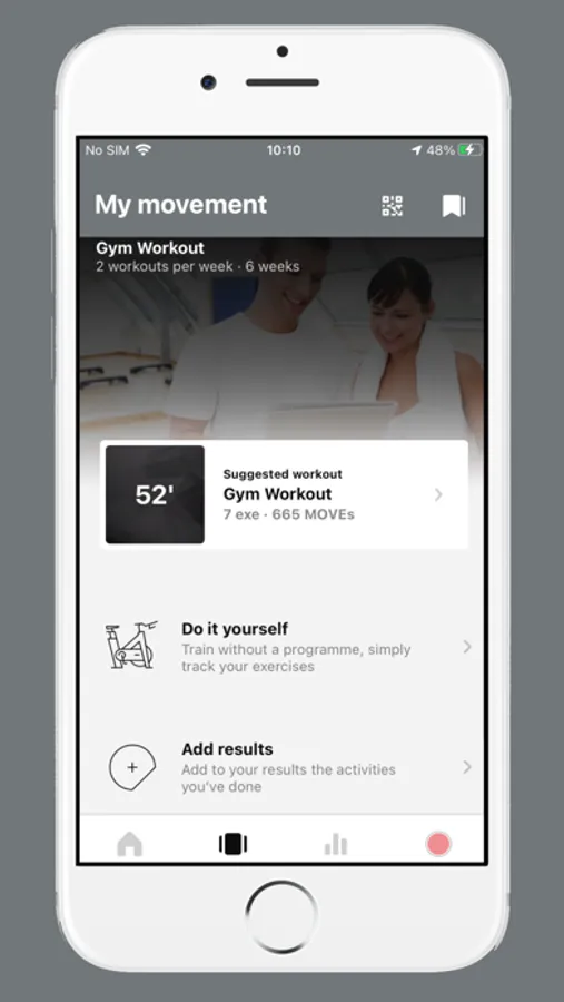 Disfrute de la mejor experiencia en instalaciones equipadas con Technogym utilizando HOMEWELLNESS para conectarse al equipo con Bluetooth, NFC o QR Code. El equipo se configurará automáticamente con su programa y sus resultados serán rastreados automáticamente en su cuenta mywellness.