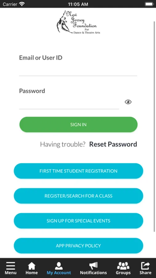 The New Jersey Foundation for Dance & Theatre Arts app allows you to manage your account with ease, register for classes, parties, and special events. You'll also receive important notifications about class changes, closings, registration openings, special announcements, and upcoming events.