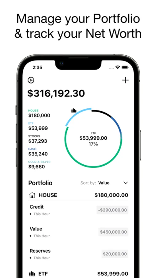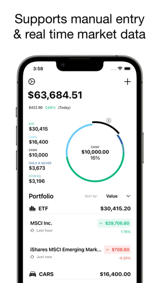 sheyps offers a maximum of flexibility. You can order all your assets in categories you define yourself. You can input values directly or as the quantity of a value. Manually provided, or from the market (premium). You decide. Currently sheyps is only available on iOS for iPhone. But in future it will be provided on iPad and MacOS as well, all synched via iCloud.