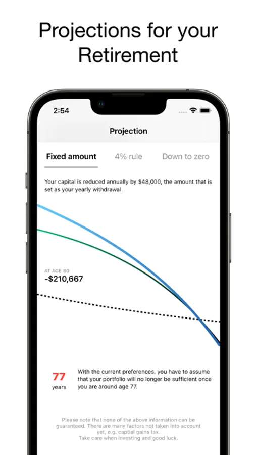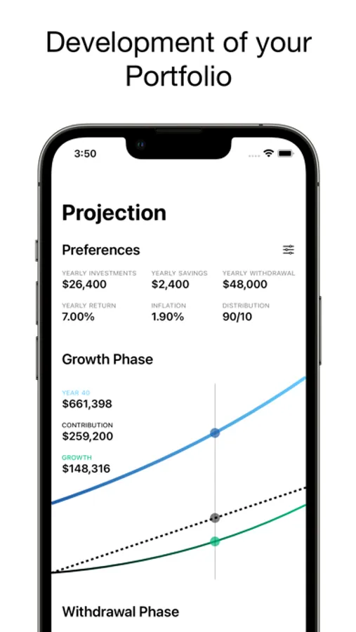 Extrapolate your current portfolio value into the future and get insights and assumptions for your retirement.