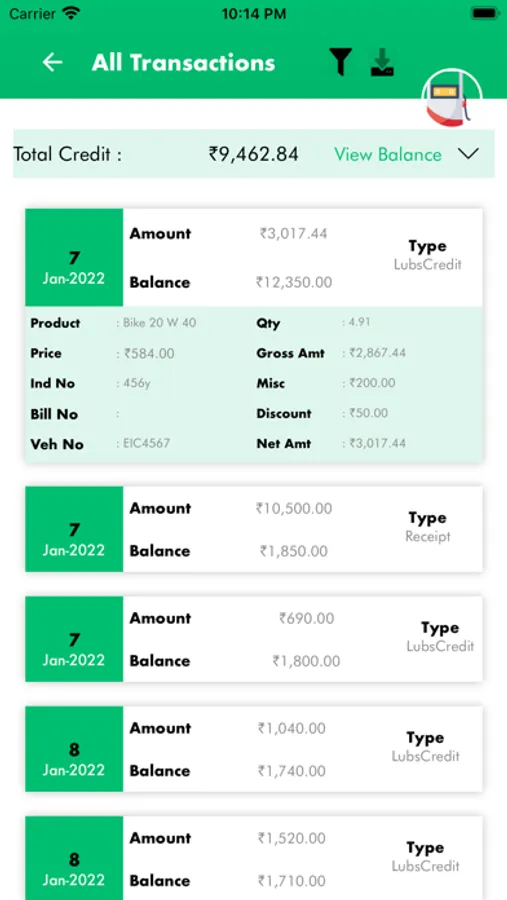 World class credit user app for petrol pump customers to monitor daily credit history and payments in more transparent way.