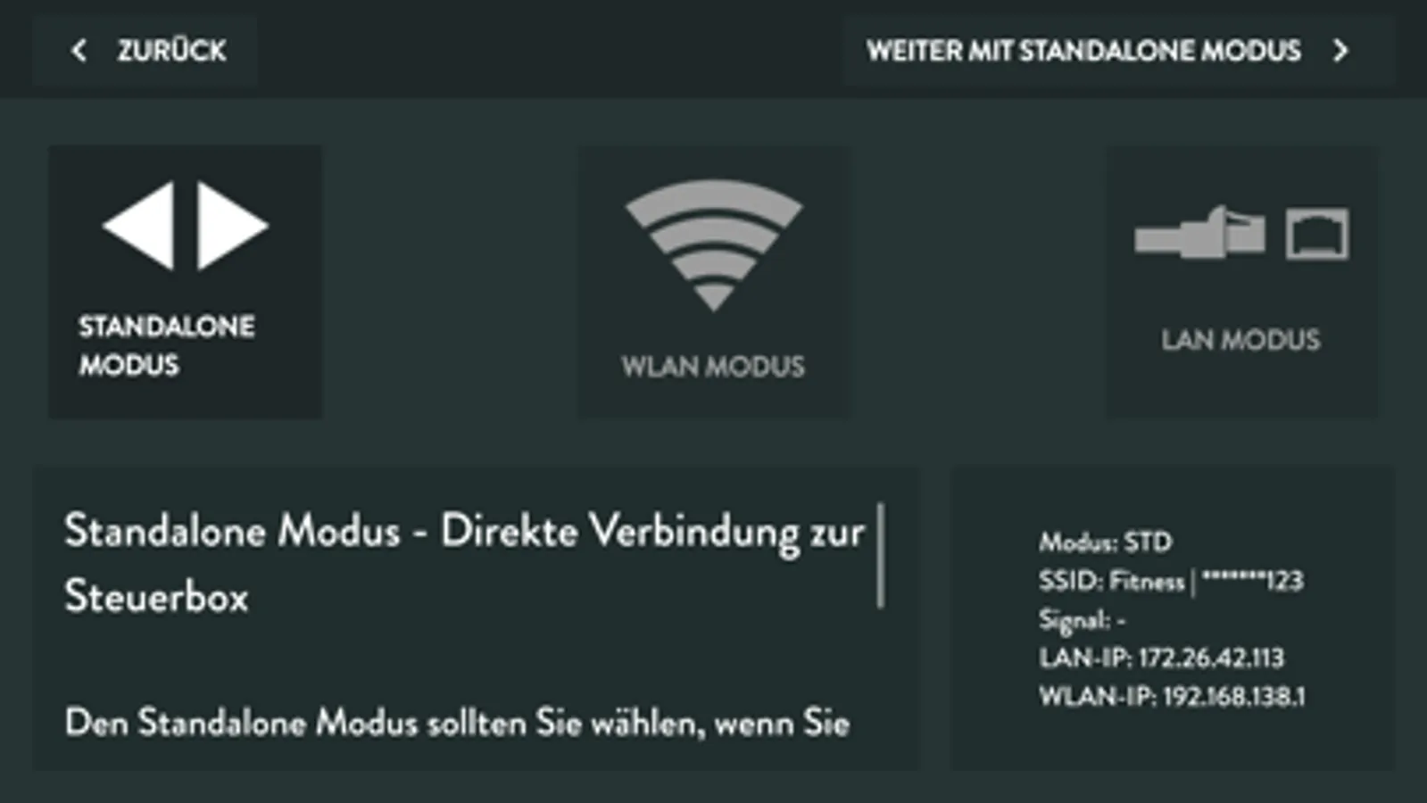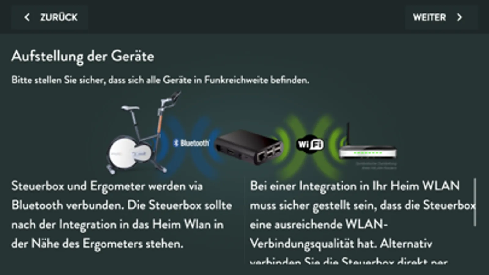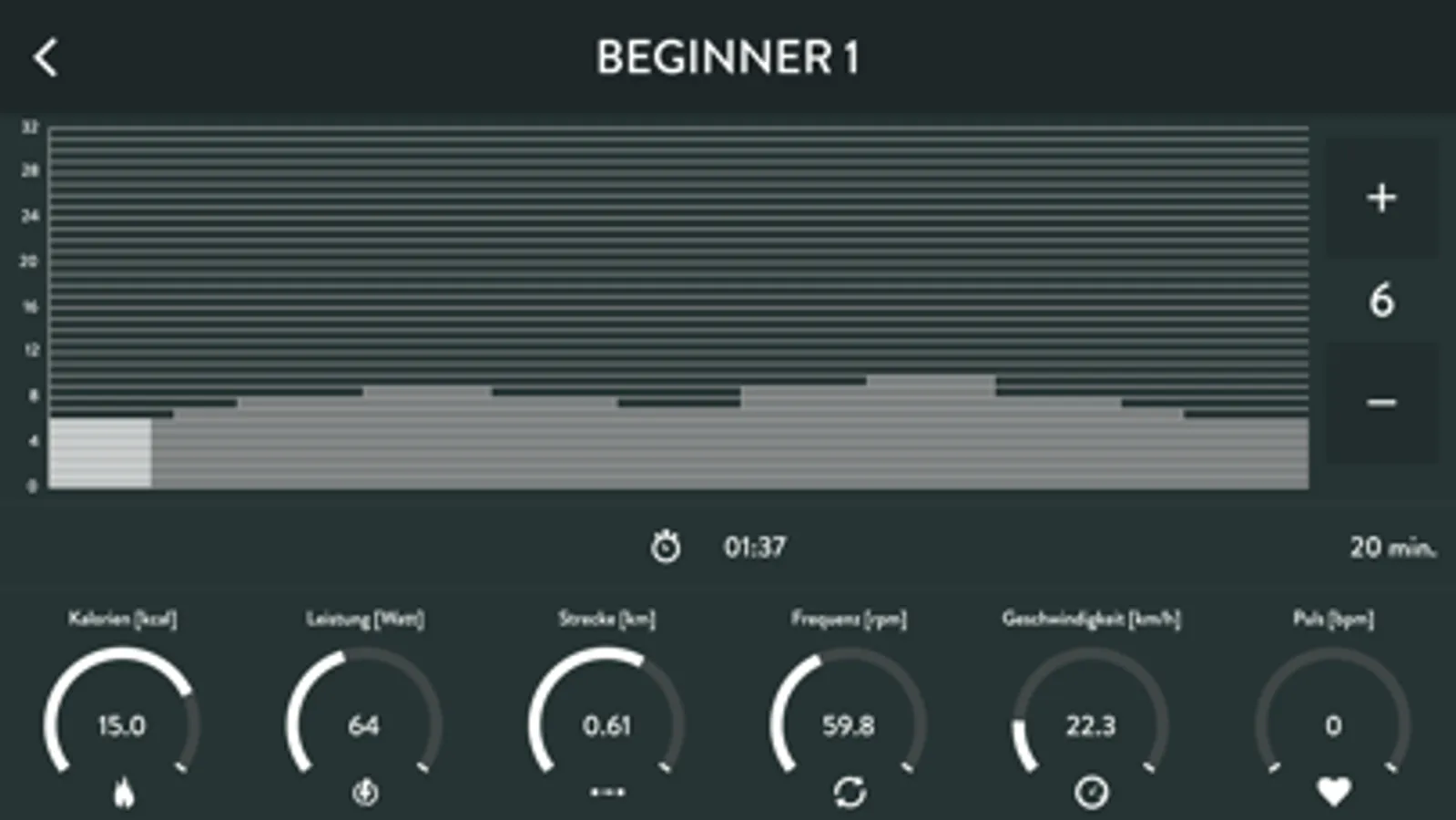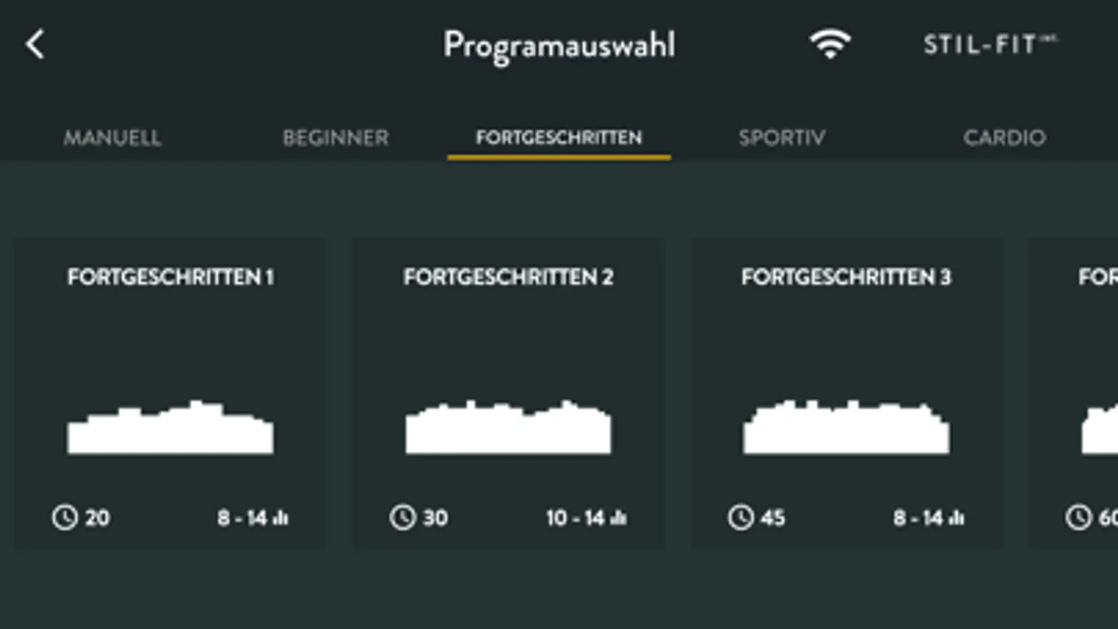 Die folgenden Trainingsprogramme lassen sich über die App steuern: Manuell, Watt Konstant, 5 Cardio Programme und 10 Hügelprogramme. Nach Programmablauf erfolgt eine Datenspeicherung und Auswertung. Die Datenspeicherung kann für eine unbegrenzte Zahl von Nutzern erfolgen. Gespeicherte Programme können über den Schnellzugriff sofort gestartet werden.