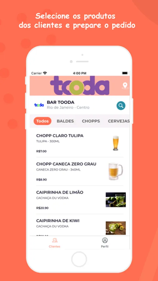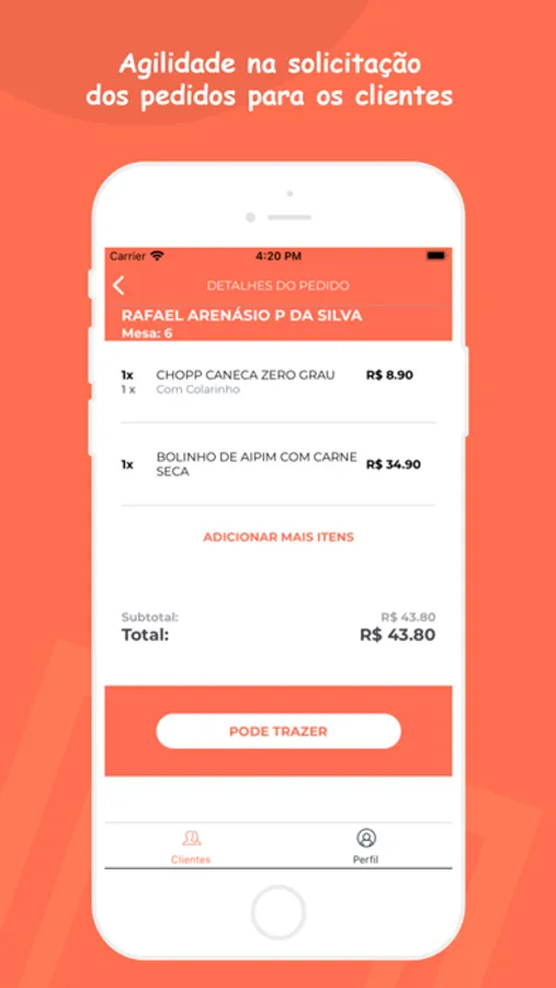 Através do nosso aplicativo de garçom, você pode realizar pedidos para os clientes, com muito mais agilidade, conforto e tudo integrado no sistema TOODA de restaurantes.