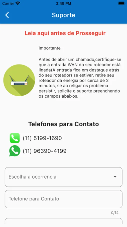 Solicitar Suporte.