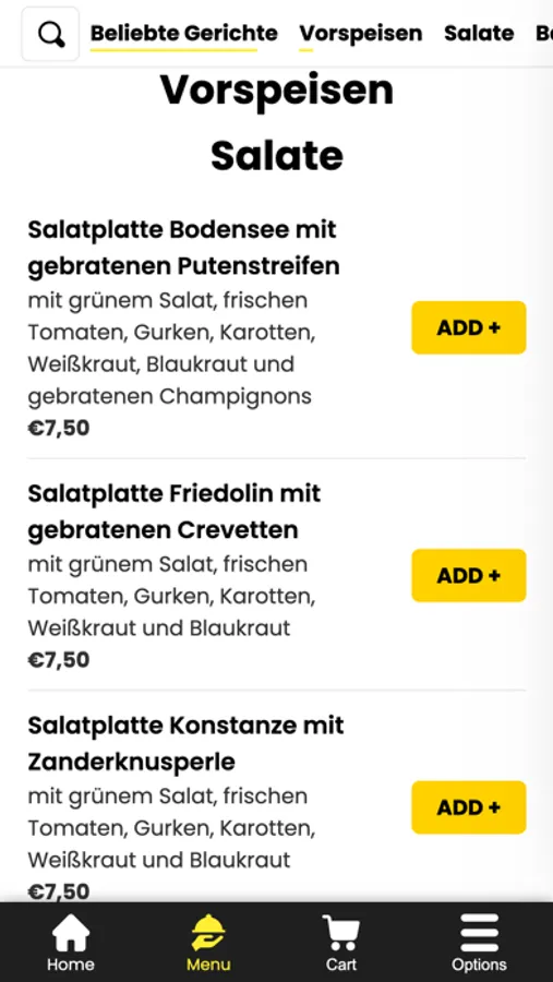 - Durchsuchen Sie die Speisekarte des Restaurants und sehen Sie sich alle anpassbaren Optionen im Voraus an