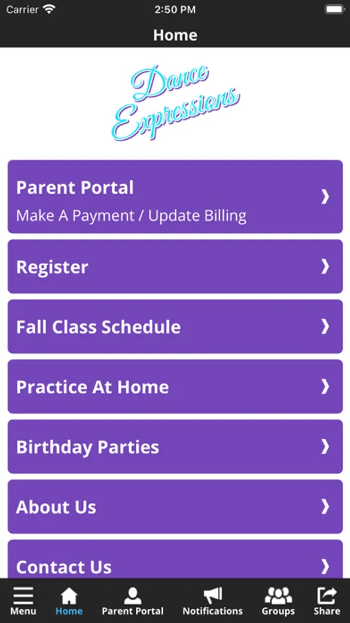 The Dance Expressions app allows you to access your online account with ease, order items for your student, practice routines at home, access important documents handed out in class, and much much more! You will also receive notifications for reminders.