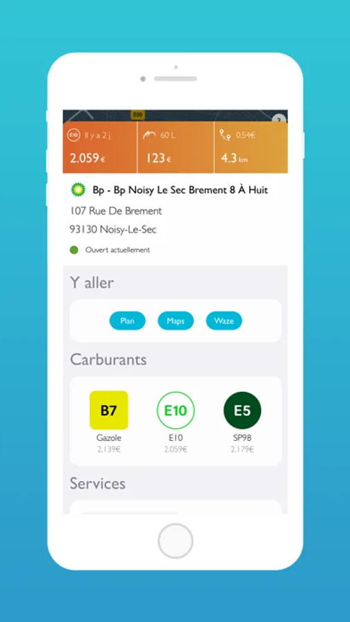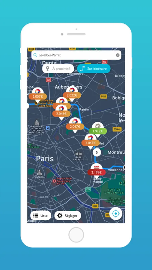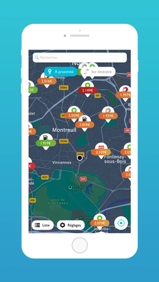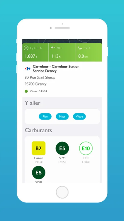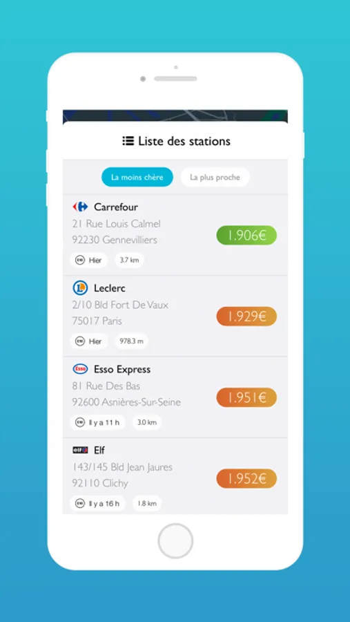 Découvrez les stations les moins chères autour de vous ou sur votre trajet grâce à la géolocalisation.