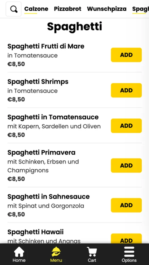 - Durchsuchen Sie die Speisekarte des Restaurants und sehen Sie sich alle anpassbaren Optionen im Voraus an