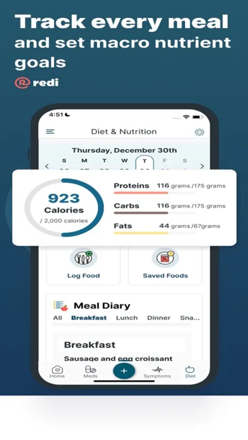 Medication tracking, diet, & exercise go hand-in-hand, so Redi Health offers diet, nutrition, & exercise tracking tools to help you create a holistic health plan that fits your unique needs.
