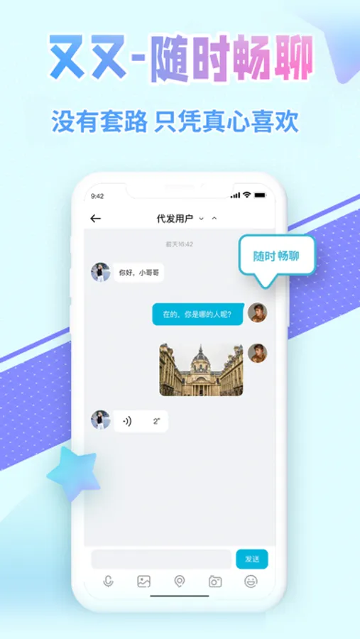 自由选择高质量有眼缘的Ta点击喜欢,得到对方回应即可进入聊天模式,不需要添加微信也可以在线聊天交朋友。线上交友线下见面,寻觅更多有趣灵魂,探索更多的发展可能性,告别单身,甜蜜恋爱~~