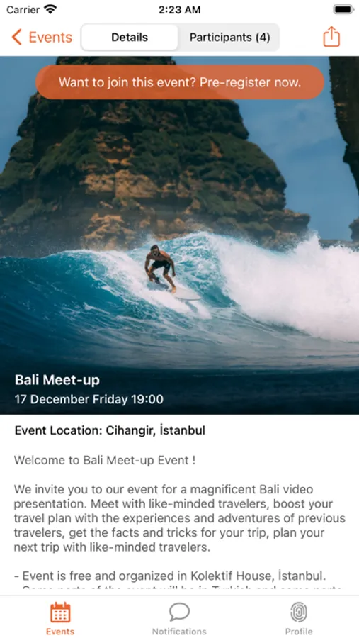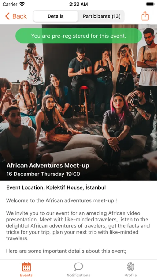 With Facts and Cities App; you can join the events you like and may thumbs up the travelers you would like to see in the events. No more empty chats. Socialize with like-minded travelers in daily events, in real life.