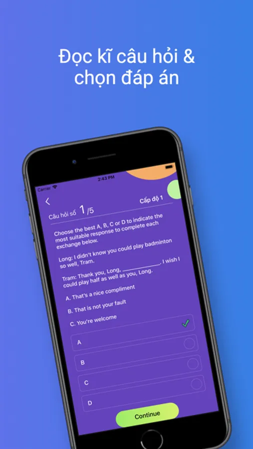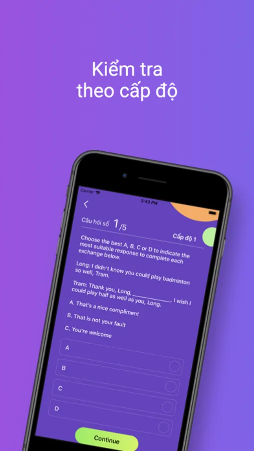 Instead of having to open the book, open the pronunciation device and search for the right audio files to listen to. Now you can do the test right on the app, very convenient for learning English.