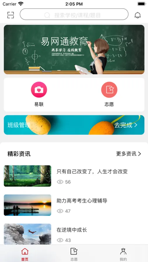 易网通教育平台是为初高中生线上学习全面发展而服务的一站式互联网学习平台,为初高中生线上学习提供在线名师视频辅导、习题作答、心态调节、心灵成长、升学报考、听力提升、生涯规划、志愿查询、师生社区交流等解决方案,用互联网教育促进初高中生更全面发展。