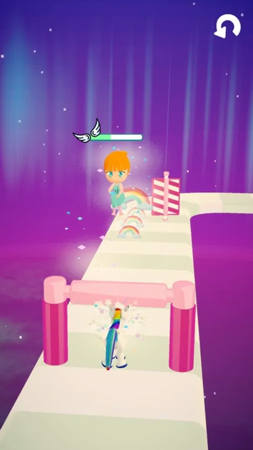 A challenging journey awaits you with your pony horse. Collect rainbows and try to reach the treasure. If you hit obstacles, your rainbows will fall. You can slide your hand to avoid obstacles and at the same time, you can pull down and drop your character to jump.