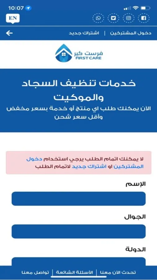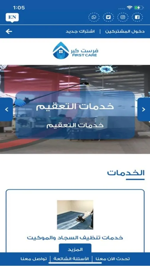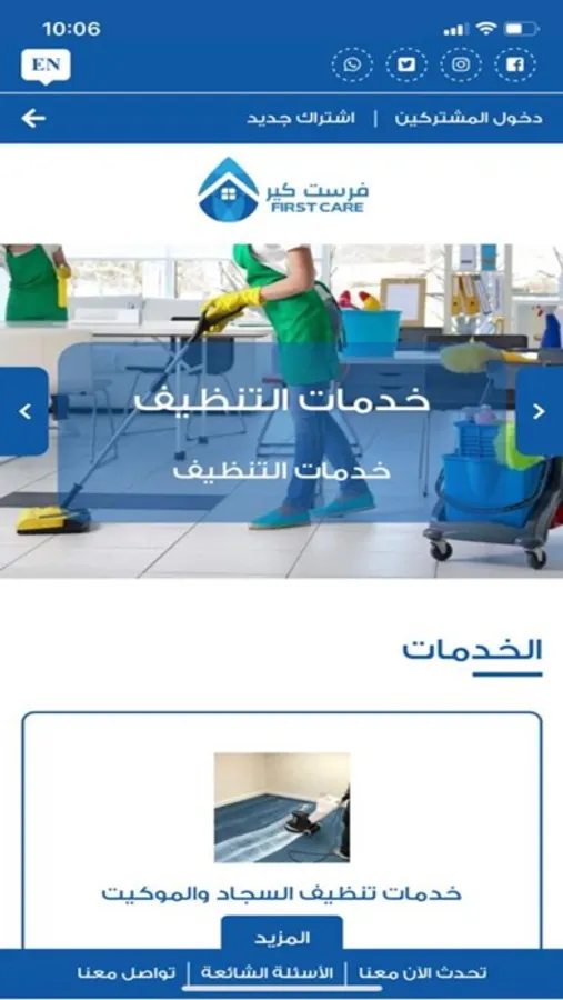 فيرست كير أول منصة من نوعها للخدمات والصيانة والنظافة والتعقيم للمنازل و خدمات التموين والكثير ٫ حيث تلبي جميع احتياجاتك بكل سهولة و يضمن فريق الخبراء المؤهلين لدينا لكل خدمة حصولك على أفضل تجربة، بحيث يمكنك الاعتماد علينا بدءًا من الحصول على تنظيف الأثاث المنزلي، إلى نقل أثاثك إلى مكان آخر، نقوم بتلبيتك بكل خدمة قد تحتاجها في أي وقت. يتبع أبطالنا بروتوكولات نظافة شاملة لضمان صحتك وسلامتك أثناء استخدام خدماتنا.