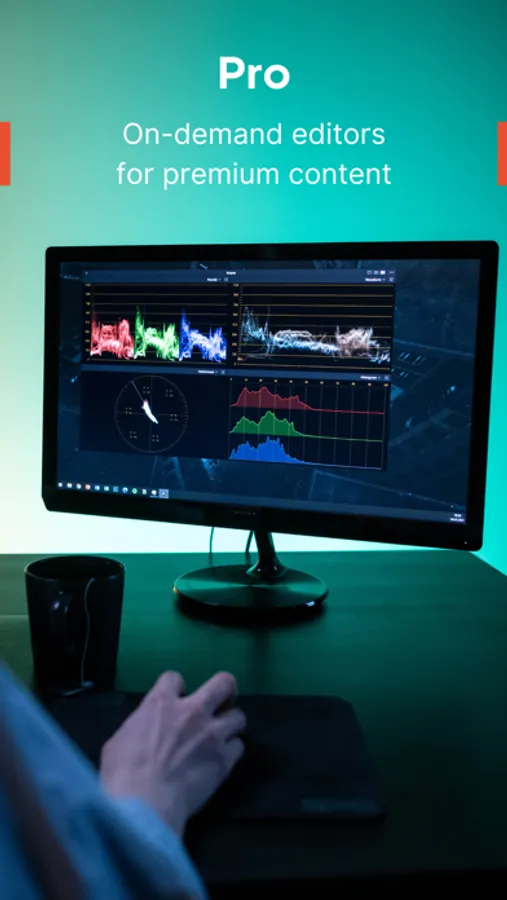 - Stylized Editing: A blend of art and science, get color correction, stabilization, jump-cuts and beat-sync in every premium video.