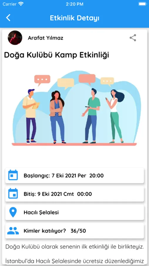 • Davet linki ile erişilebilen özel etkinlikler oluştur, katıl