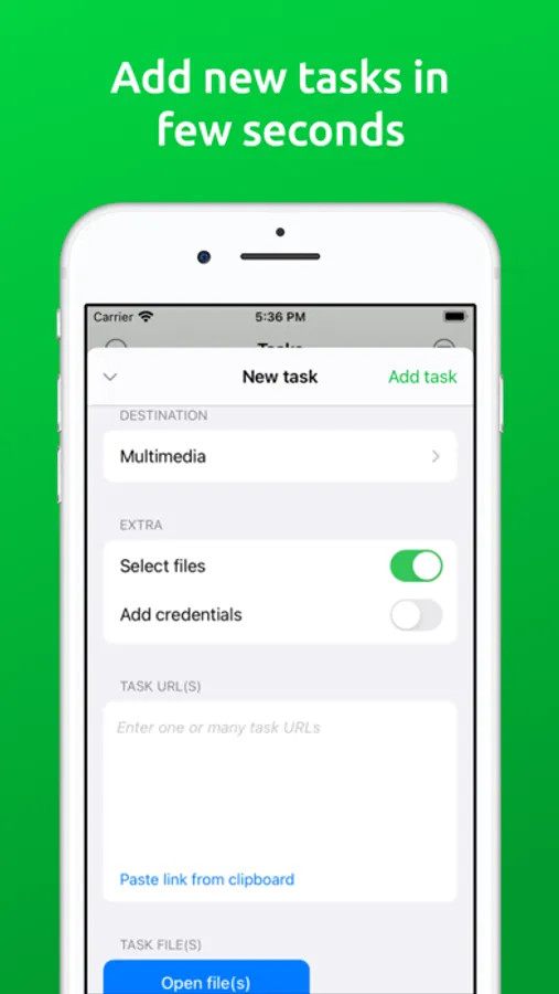 ‧ Select files when task adding