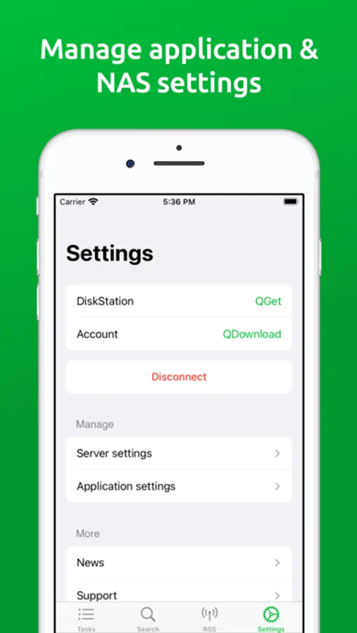 ‧ Manage application & NAS settings