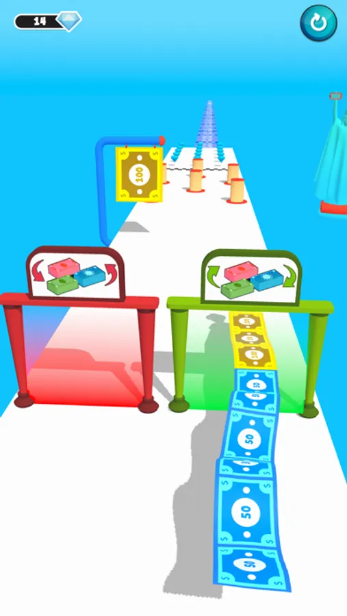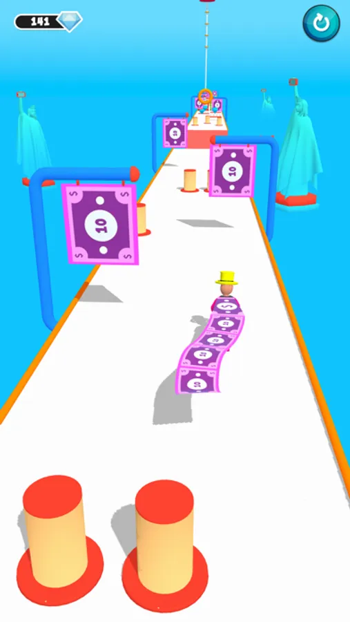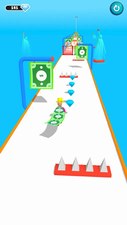 Collect money on the platform and dodge obstacles to make your cape longer.