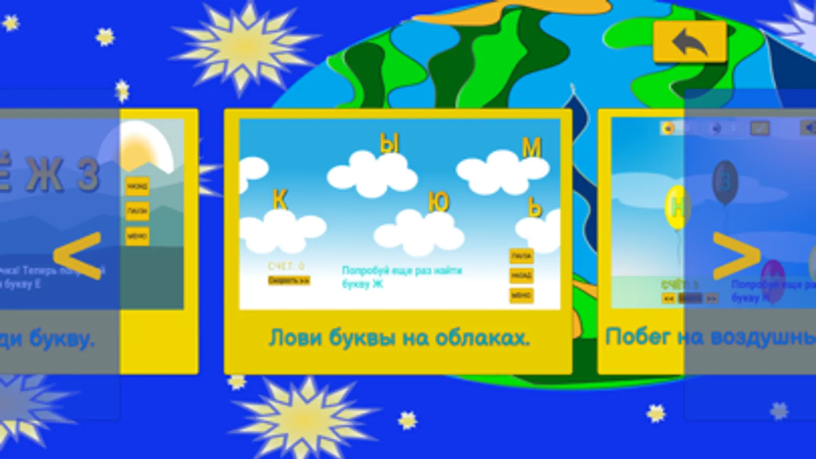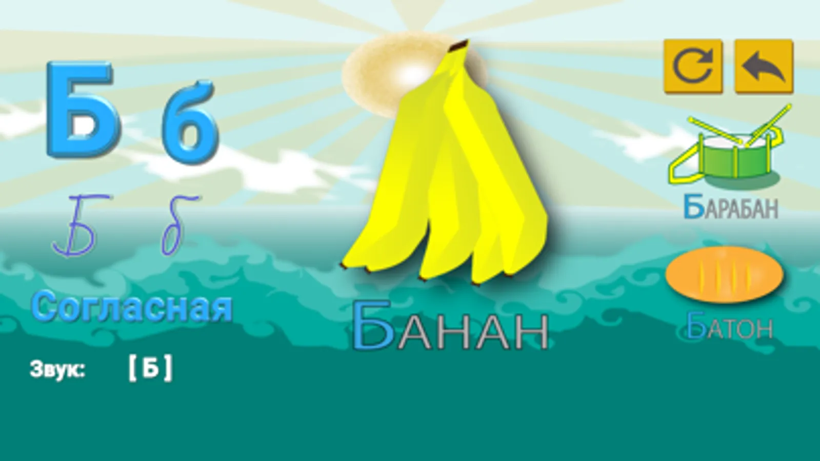For those who do not know Russian, we have added English translation in the Alphabet and Educational Games sections (buttons and primary messages of the application have been translated).