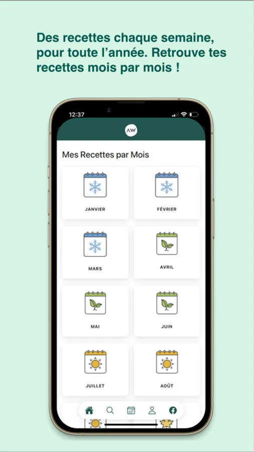 Les recettes sont également classifiées de saison, regroupés par mois, te permettant d'y