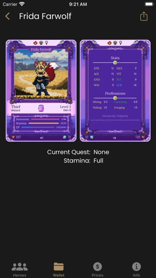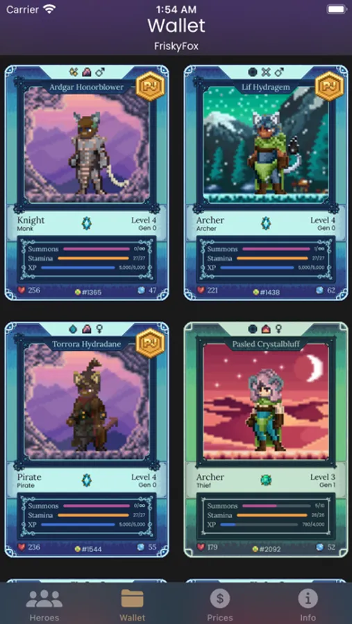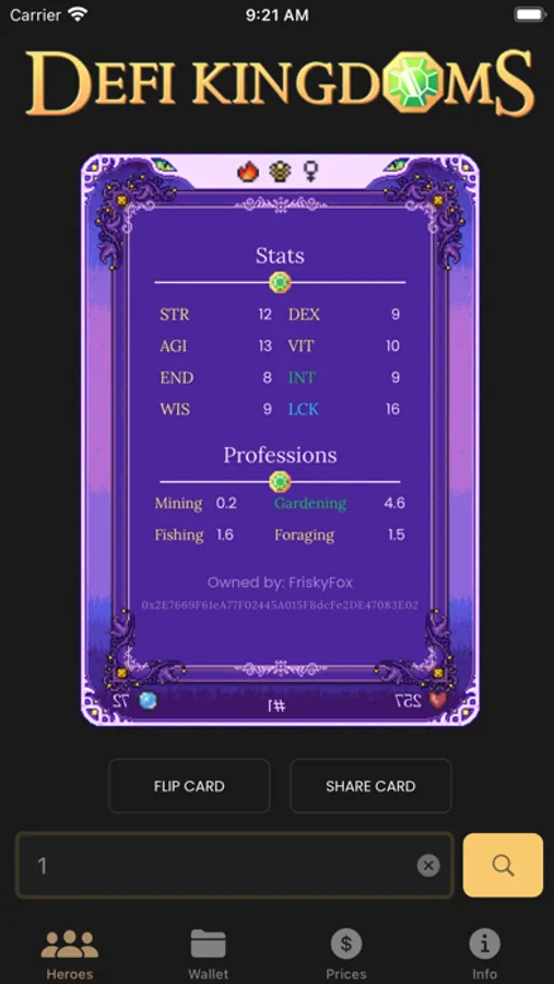 DKF Heroes is a must have for all DeFi Kingdoms fanatics. Right from your phone you can easily view your Hero stats, check stamina for your Heros, and see market prices.