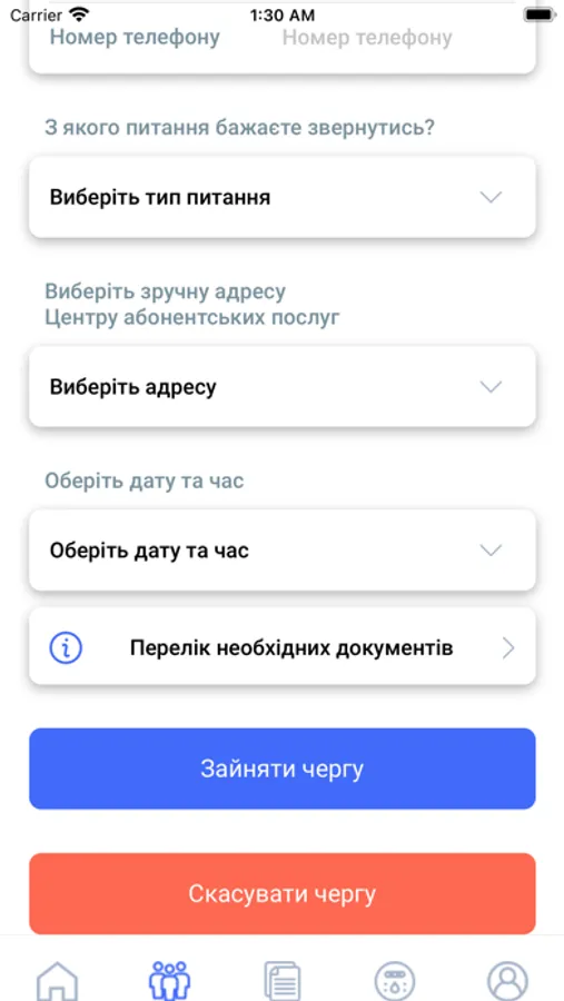 - записатись на прийом до центру абонентських послуг за допомогою електронної черги.