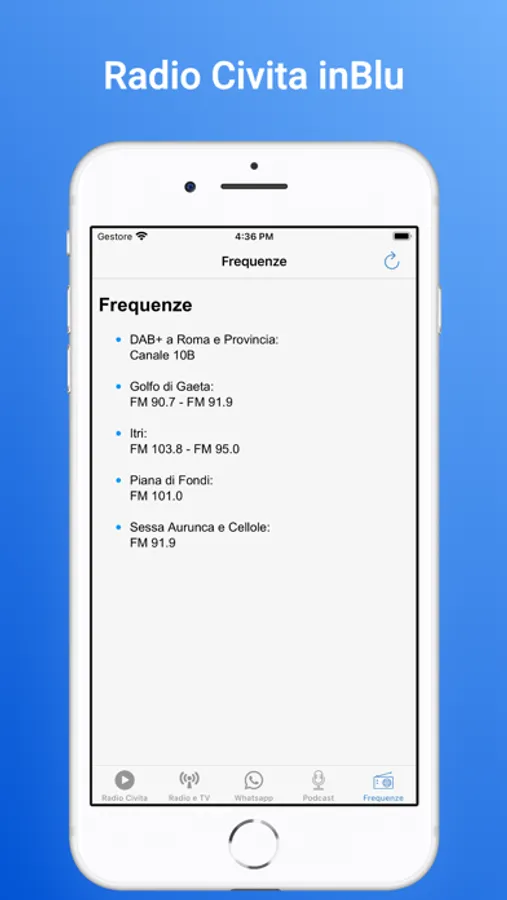 L'app di Radio Civita permette di ascoltare e vedere la radio, comunicare via WhatsApp e social, leggere le notizie dei siti dell'Arcidiocesi di Gaeta e di Radio Civita, leggere la pagina di Lazio Sette Gaeta, inserto domenicale di Avvenire.