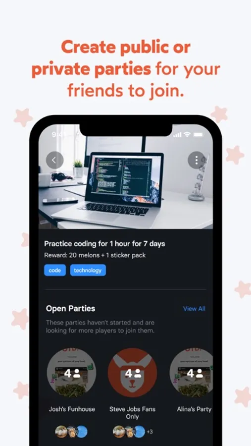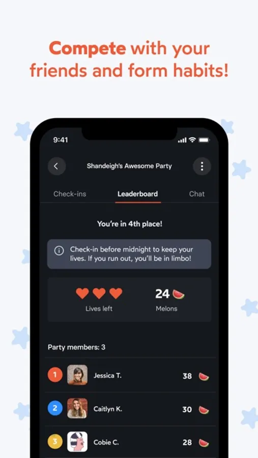 Connect with your friends by creating daily challenges for you and your party to complete. Stay accountable through some friendly competition and climb to the top of the leaderboard!