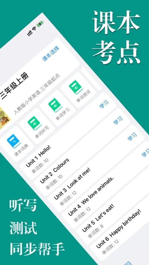 与教材同步, 课本单词, 知识点全面提炼覆盖.