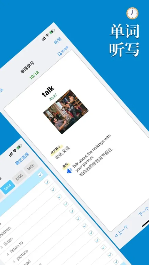 听写的速度,顺序,次数自由设置,听写单词的范围自由选择,播报语音标准,使用便捷.