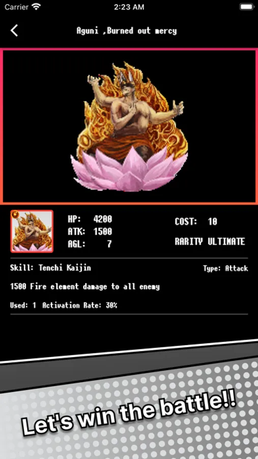 In this game, you collect characters, create your own team with the characters you got. And battle against other users around the world.