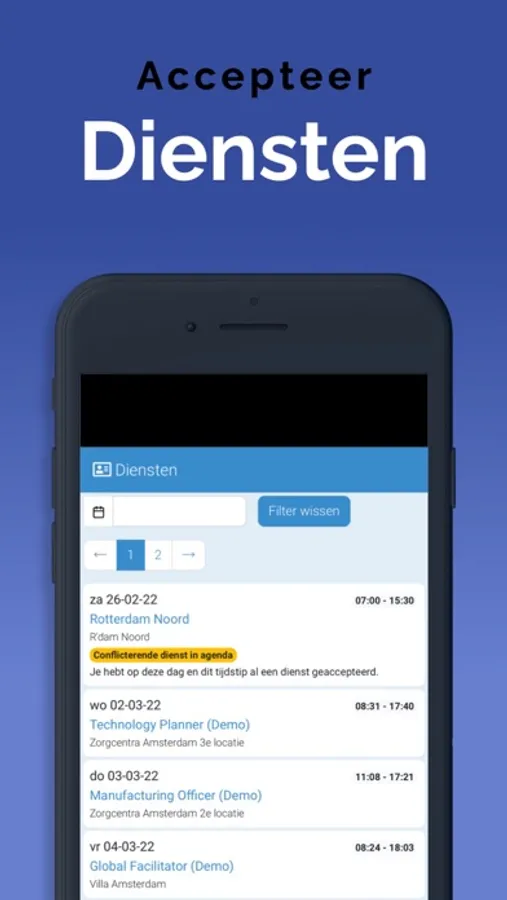 De App is gekoppeld aan het systeem waardoor informatie altijd up-to-date is, via een overzichtelijk dashboard. Bovendien komen belangrijke meldingen, als nieuw beschikbare opdrachten, via een push melding binnen op het apparaat. Zo zie je niets over het hoofd. Ook wijzigingen worden direct zichtbaar, ook in de agenda. Je bent dus altijd op de juiste plaats aanwezig.