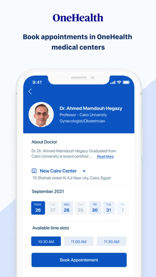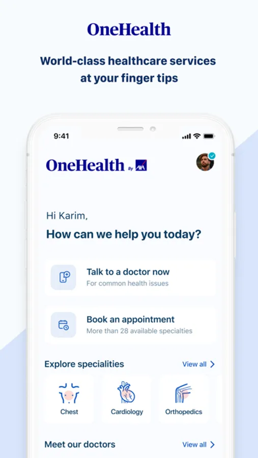 Book an appointment with a doctor in one of OneHealth medical centers. We offer different specialties: Family medicine, Cardiology, Chest, Dentistry, Dermatology, Ear Nose and Throat, General Surgery, Internal Medicine and Gastrology, Gynecology and Obstetrics, Neurology, Orthopedics, Pediatrics, Rheumatology, Physiotherapy, Psychiatry. From the app, you can discover the nearest OneHealth medical center to you. We are constantly expanding in new locations.