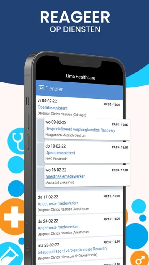 De App van Lima Healthcare is er voor jou, om te zorgen dat jij je werk zo makkelijk mogelijk kan doen!
