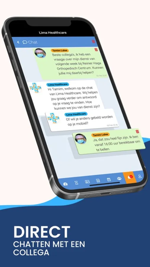Bovendien kun je direct contact opnemen met Lima Healthcare via de Chat binnen deze App. Ideaal als je toch nog ergens vragen over hebt.